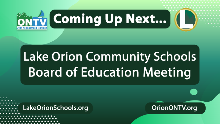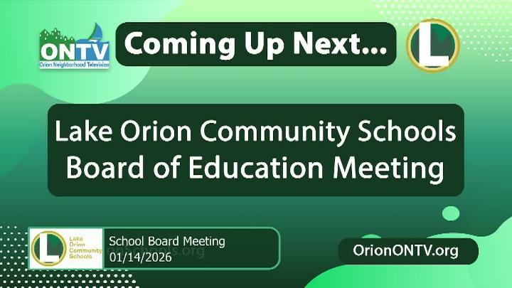 All government meetings will be available for viewing 24 hours after the scheduled meeting date and time. 248-393-1060 for more information. NOTE: Meetings are kept on VOD file for one calendar year. ONTV records meetings as a community service and are done so to best of our ability. All meetings are recorded upon request from Orion Township, The Village of Lake Orion, and the Lake Orion Community Schools.